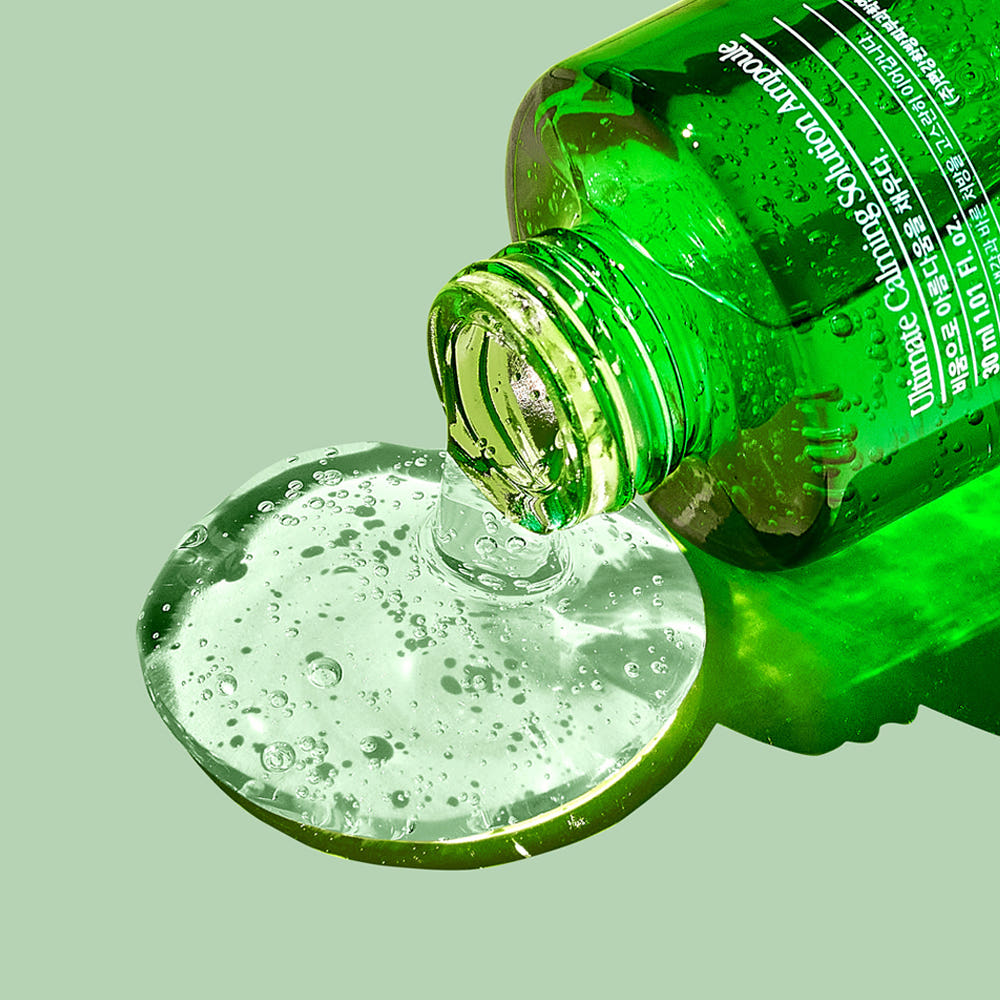 The Ultimate Calming Solution Ampoule is formulated with Coptis chinensis, Phellodendron amurense, and over 50 other oriental medicine ingredients to calm and moisturize the skin. It is certified effective for acne care, non-irritating, and has been tested for its effectiveness on human skin, showing significant decreases in blemishes, sebum, blackheads, and whiteheads. The ampoule includes Vitamin C from Adansonia Digitata seed oil to calm skin troubles, five hyaluronic acids, and five ceramides to balance oil and moisture, and shea butter to strengthen the moisture barrier. It is recommended for use with Pyunkang Yul Ultimate Calming Solution Cream and Ultimate Calming Toner for clearer, glowing skin without causing irritation. Key ingredients include patented ACC Ingredients (Paeonia genus, Cornmint, Phellodendri Cortex, and Scutellaria Baicalensis Root Extract) to provide a calming solution for sensitive skin. The ampoule has a fresh, clean texture that absorbs comfortably without stickiness, suitable for use after washing the face. To use, dispense an appropriate amount and spread evenly over the face.